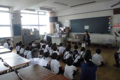 7月5日(水)ストーリーテリングがありました。2時間目と3時間目にそれぞれの学級に「旭おはなしたい すみれ」の方々に来ていただき、お話を語っていただきました。