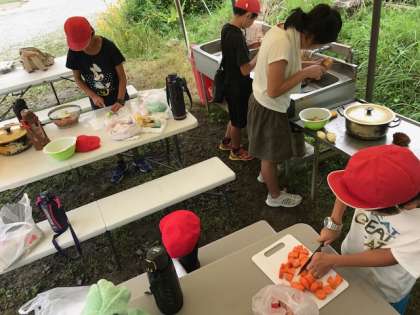 カレー作りが始まりました。ごはん焦がさないようにしてくださいね。おいしいカレーができますように。