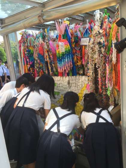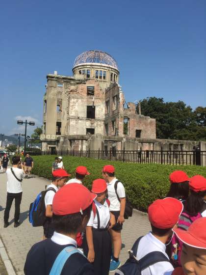 原爆ドームを見学後、昼食を食べました。原爆の子の像の前で、歌と平和に向けての発表をし、全校児童で作った折り鶴を捧げました。平和記念資料館で様々な資料を見学し、平和祈念資料館では語り部さんのお話を聴きました。平和について深く考えることができました。