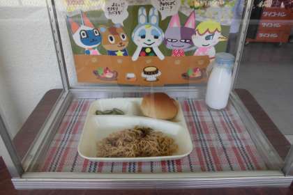 黒糖パン、牛乳、やきそば、きゅうりのしょうがづけです。とても食べやすい献立でした。残さず食べることができたようですね。