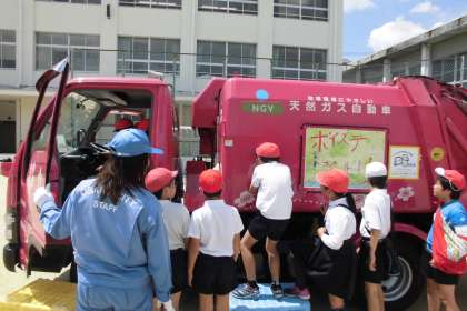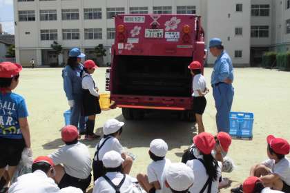 4年生がパッカー車体験をしました。社会科の学習で「わたしたちのくらしとごみ」の学習をしています。そのゴミがどのように集められるのかの実際を自分たちの目で見て、体験することはとても大切なことだと思います。パッカー車にごみを投入する体験をしました。その後、パッカー車の中を見せていただきました。3時間目は、多目的室で環境事業局の方のお話を聞きました。仕事の内容がよくわかったと思います。