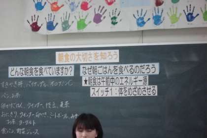3時間目に6年生の栄養教育がありました。「朝食の大切さを知ろう」というテーマでの学習でした。早寝・早起き・朝ごはんと言われているくらい、朝ごはんは大切です。朝ごはんを食べないとどのような影響があるのかなどを考える学習をしました。