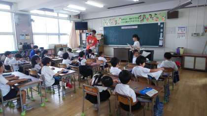 今日は行事がとても多い日です。まず、2年生が栄養教育の学習がありました。テーマは「たべもののはたらきをしろう」でした。1年生で3種類(赤・黄・緑)の食べ物があることを学習しています。2年生では、その3種類の働きを学習します。それぞれの働きをしっかり理解することで、自分の体を知ることになります。赤の食べ物は体をつくるもとになること、黄色の食べ物は熱や力のもとになること、緑の食べ物は体の調子を整えることが理解できたでしょうか。こういったことを考えながら何でも食べることにつながるといいですね。