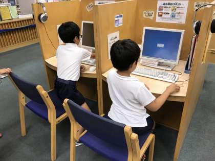 3年生が旭図書館と区民センターに社会見学に行きました。旭図書館では、図書館の仕事の内容について話がありました。また、大型絵本の読み聞かせもしていただきました。パソコンを使わせていただくこともできました。