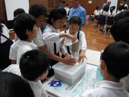 知りました。濁った水を砂でろ過して、澄んだ水にする実験