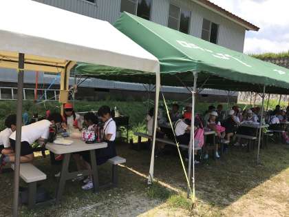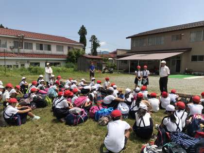 無事に宿舎につきました。これからお世話になる宿舎の方にしっかりあいさつをして昼食タイムです。バスの中でも音楽を聴きながら楽しく過ごしたそうです。この後、部屋に入り避難訓練をして、いろいろな活動が始まります。