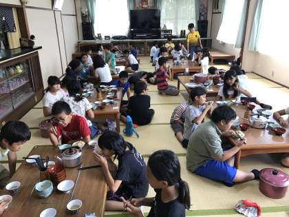 お昼ご飯の五目ご飯です。美味しくて、子どもたちは何杯もおかわりしていました。