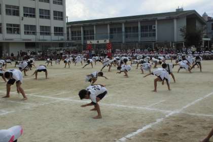 まず、1・2年生、3・4年生、5・6年生の団体演技です。