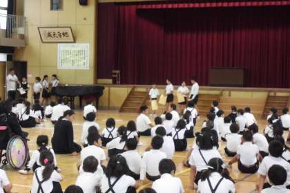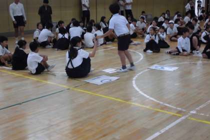 今回の児童集会は、「いつ」「どこで」「だれが」「なにをした」ゲームをしました。