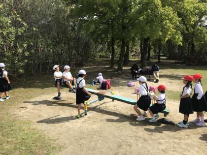 10月12日(金)1年生と2年生が千里北公園に遠足に行きました。たくさん歩きました。秋の木の実を拾ったり芝生で遊んだりしてたくさん遊ぶことができました。きっと疲れたことでしょう。