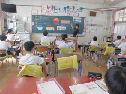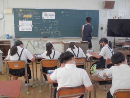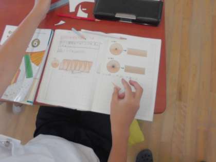 6年生が円の面積の求め方を学習していました。公式だけを覚えるのではなく、なぜそうなるのかを考えることが大切です。四角形を書いたり、三角形から求めたりなど、考えることがその後の図形の見えない部分を考えることにつながります。