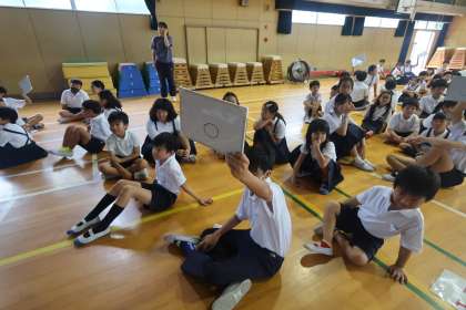 今日は、児童集会で、教職員に関する事が質問のお題となり、「合ってたあ」や「「うわぁ」など一問ごとに歓声があがって、大盛り上がりでした。ホワイトボードも大活躍でした。