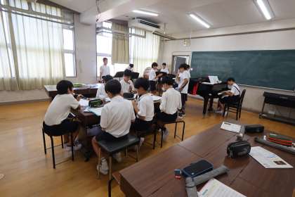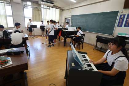 1年生と同じ5時間目に6年生が合奏の練習をしていました。6年生も1年生の時は、たどたどしく鍵盤を弾いていましたが、いまでは、それぞれ違う楽器に挑戦するまでになりました。「木星」を練習していました。