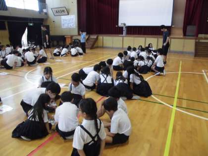 今日の児童集会は、全校遠足に向けた話し合いでした。
