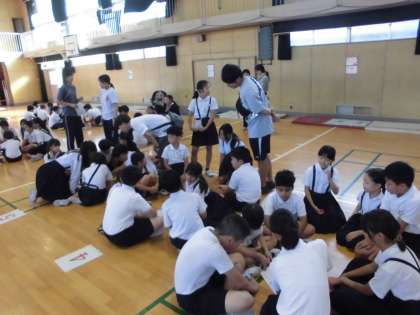 今日の児童集会は、明日の全校遠足に向けた話し合いでした。