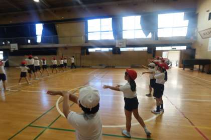 3年生・4年生が運動会のダンスの練習をしていました。まだ始まったばかりですので、覚えることがいっぱいです。今日は、隊形の変化でした。