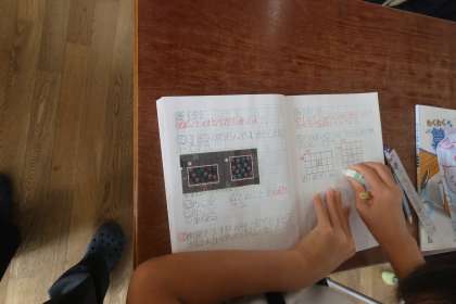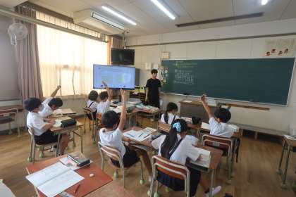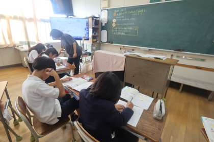 4年生が、少人数に分けて、算数の面積の学習をしていました。図形の学習において、見えないところを見通すという力が必要であり、少人数で行うことにより、より個に対応し、見通しを持たせやすくなるので有効です。