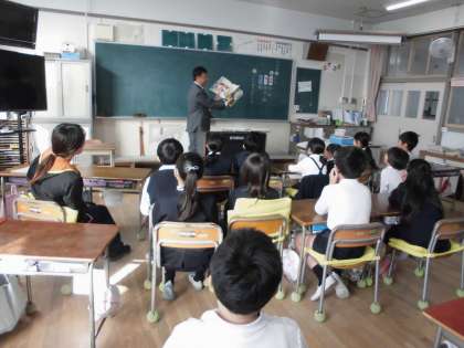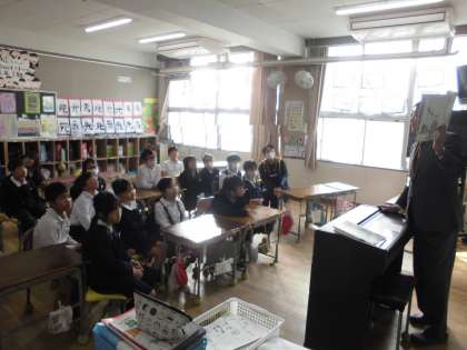 読書週間です。例年、私がクラスをまわり、読み聞かせを行っています。今日は3年生に朝の会の時間に行きました。読んだ本は、「ねんどぼうや」と「3匹のかわいいおおかみ」です。読み終わった後、2冊のうち好きなほうに手を挙げてもらったら意見が分かれました。子どもたちには、そうやって好きな本が一緒でないことも大切なことだよと話しました。動画の視聴時間が長いことが全国的な問題ですが、活字を読む習慣を身につけてほしいと思います。 校長 藤本栄一