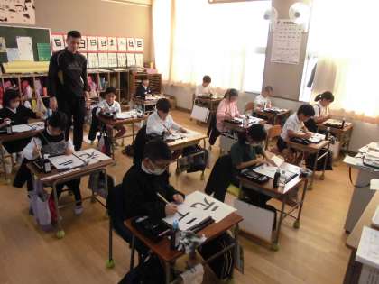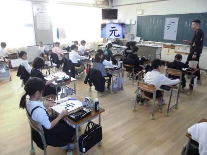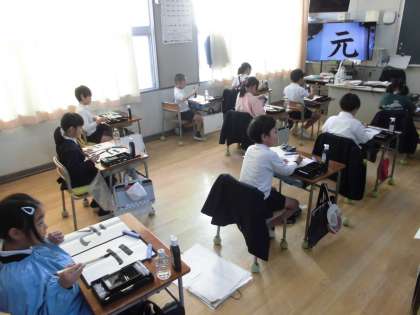 三年生が書写の学習で「元」という字を書きました。