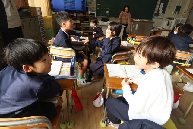 1年生が、100という数字の概念について学習していました。そして100の意味を理解できるよう唱えながら、100を意識させる学習でした。