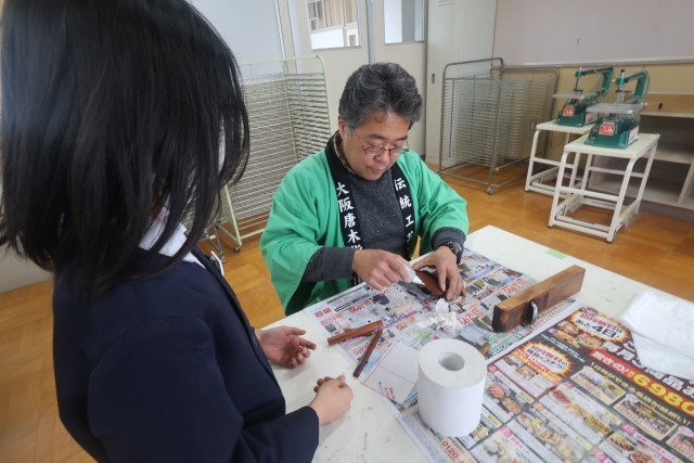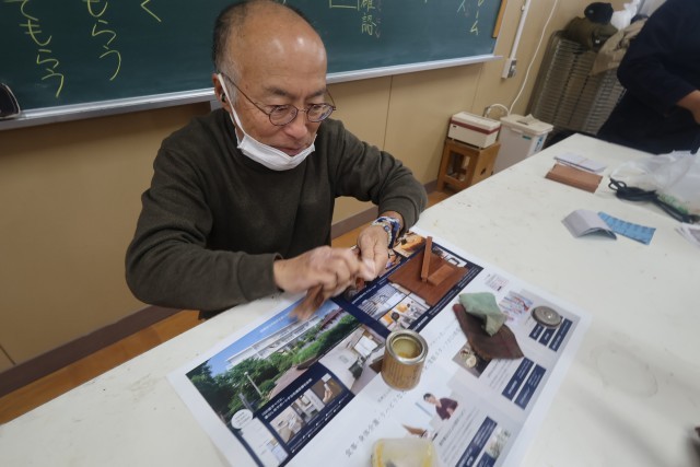 いよいよ最終の工程。みつろうというミツバチの巣から抽出した天然のWaxを使用して、光らせていきます。接着剤を使って、フォトフレームが完成です。子どもたち大満足で、顔がキラキラしています。