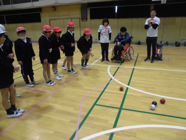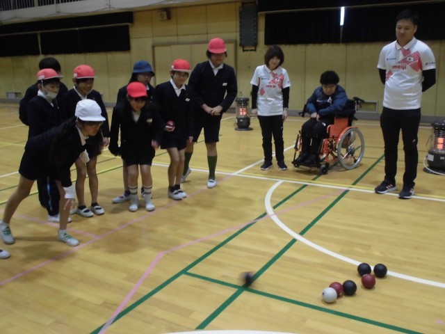 本日、ボッチャキャラバン事業の方々をお招きして、4年生がボッチャ体験をしました。メダリストの選手から実際のメダルを見せてもらい、子どもたちは歓声をあげていました。初めての取組であるにもかかわらず、すぐにルールを理解し、楽しんでいました。今後もゲストティーチャーをお招きしての「ホンモノの体験」を実施していきたいと思います。