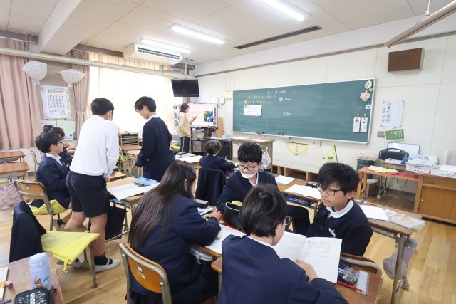5年生、「速さと時間」のところを3学級に分かれて学習していました。ここは大人になってもよく使う考え方です。今のうちにしっかりと理解してほしいところです。