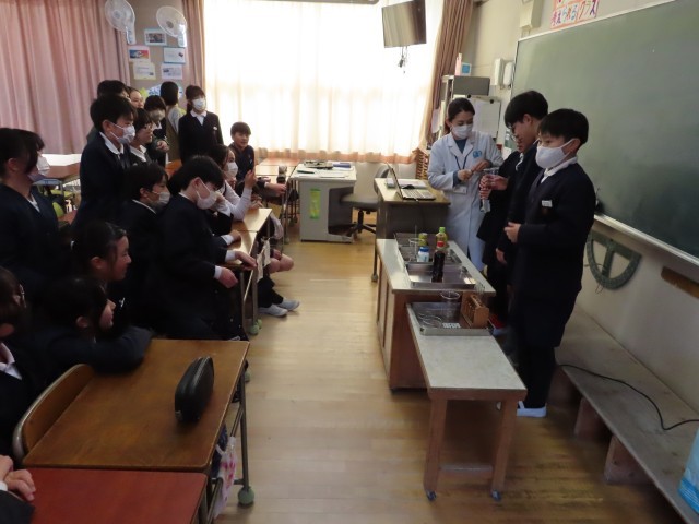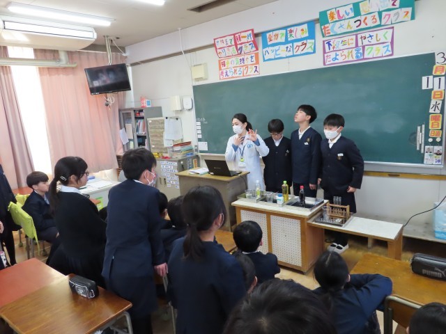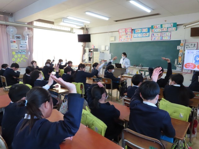 学校薬剤師の先生に来ていただき、6年生を対象に薬の正しい使い方など、薬についての授業をしていただきました。