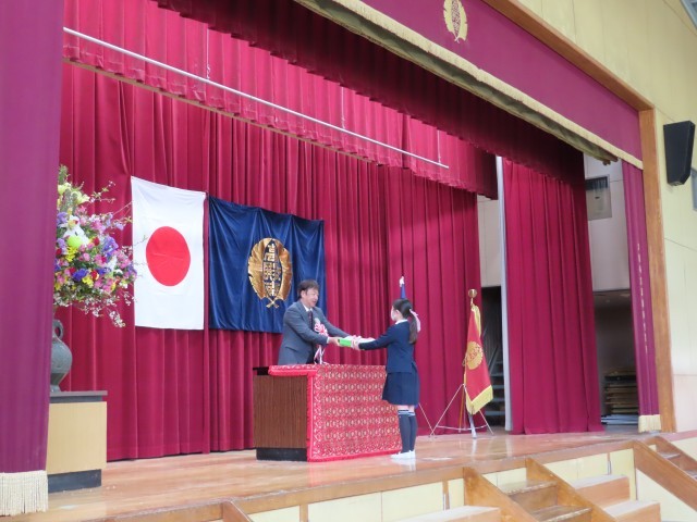 児童を代表して5年生の児童が校長先生から修了証・通知表を受け取りました。