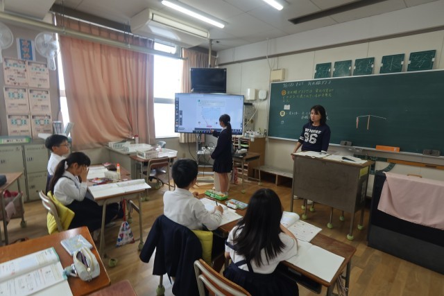 4年生が、2つのクラスを合わせて、また3つに分け、算数のグラフの学習をしていました。図形であるとかグラフであるとか視覚的なものは、人数が数ないほうが有効になります。みんな、がんばっていました。