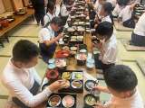 広島焼きを初めて食べる子も多く「美味しい、美味しい」と食べていました。