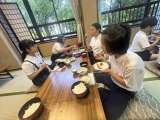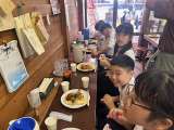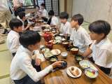 夕食はすき焼きなど和食のメニューでした。「美味しい、美味しい」としっかり食べま...