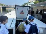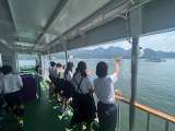 世界遺産航路の船に乗りました。原爆ドームから宮島まで向かいます。始めは、川を航...