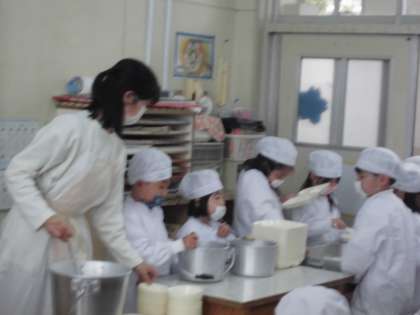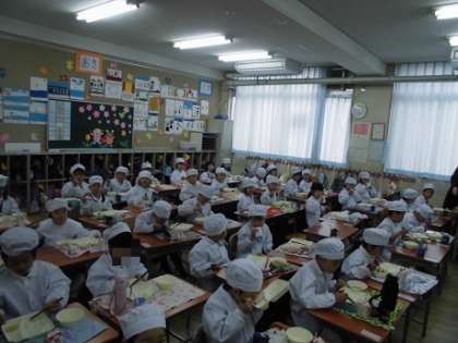 昨日は入学して初めての給食でした。牛乳を配ったり、小さいおかずを配ったり、協力して頑張りました。