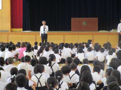 児童朝会では校長先生から「自分が楽しいと思っていても相手は嫌な思いをしていることがある。自分の思いだけでなく相手の気持ちも考えて楽しい学校生活を送ろう」とお話しがありました。
