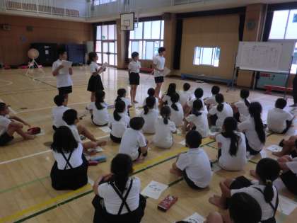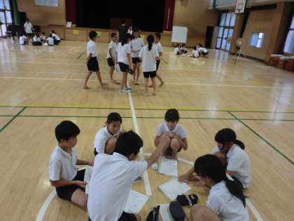 初日の今日は、自己紹介とそれそれの目標を発表しました。その後は、班に分かれて応援合戦の振り付けを考えました。6年生が中心に班をまとめ、4・5年生も自分の意見をしっかり伝えて、みんなで協力して活動していました。