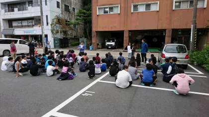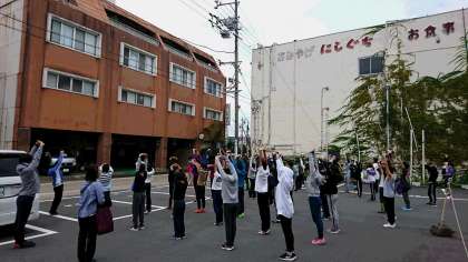全員朝の集いで軽く体を動かした後、今日の予定の確認です。