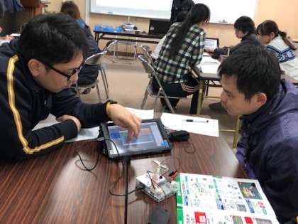 来年度から新学習指導要領が施行されます。新しく始まるプログラミング教育に向け、教員研修会を行いました。今回は6年生の理科「電気の利用」の単元で、電気を効率よく使用するための工夫や仕組みを理解する手立てとしてプログラミングを取り入れた授業づくりを検討しました。プログラミングして機器を操作する楽しさを確認したり、児童へ指導する際の課題を見出したりと、有意義な研修となりました。