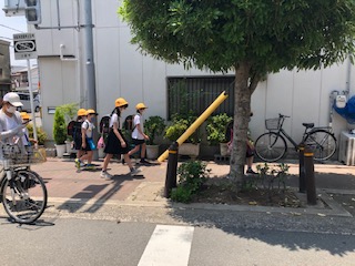 登校の様子ですが、児童一人一人が交通ルールを守り、安全に気を付けて登校することができています。歩きながら友達同士でふざけあったり、歩道からはみ出したりすることもなく、定められた時間に登校していることから、「さすが榎並小学校の子どもたちだなあ」と、感心するとともに、頼もしく感じています。