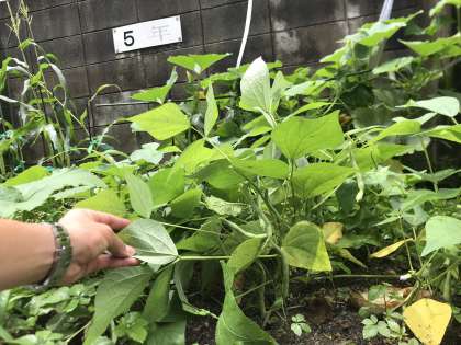 理科の学習で学習園に植えたえんどうまめが育ってきています。