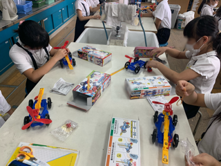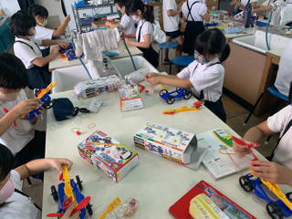 風とゴムの実験が終わり、ずっと楽しみにしていたプロペラカーづくりに入りました♪