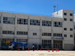 本校では、令和2年度8月末から令和3年度12月末まで、講堂棟とB校舎(給食室、図書室がある校舎)の校舎の長寿命化改修工事が行われます。この工事は学校施設の耐久性を高めることを目的としております。