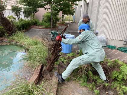 管理作業員さんが、池を掃除して水を入れ替え、成長しすぎて活動の妨げにもなっていた木を伐採してくださいました。