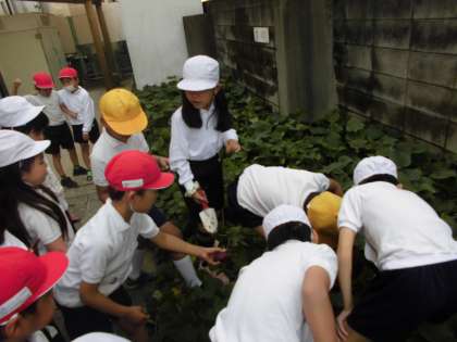11月12日(木)に2組、13日(金)に1組が、学校の学習園で育てていたサツマイモの収穫を行いました。
