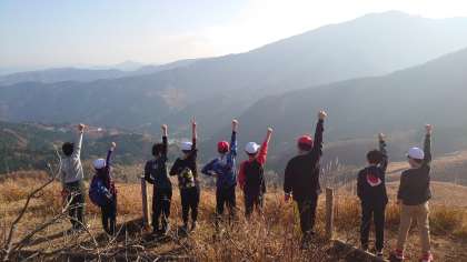 全員で無事に登頂しました。みんな達成感を味わっています。