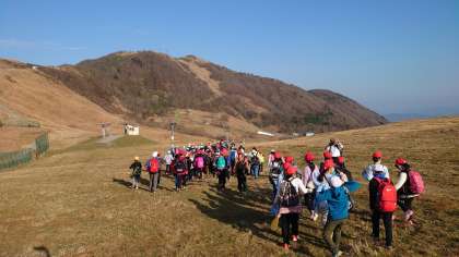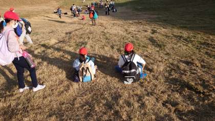途中、斜面でそり滑りをしました・・・滑りません(笑)