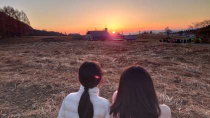 今朝は少し早起きして、日の出を見ました。真っ赤な太陽があがってくる様子に、子どもたちは大興奮でした。