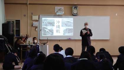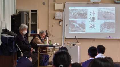 12月9日(水)に6年生を対象とした地域講話を実施しました。「戦争を知り、未来を考える」をテーマに、太平洋戦争を経験された吉村さんと吉村さんのご子息にお話いただきました。