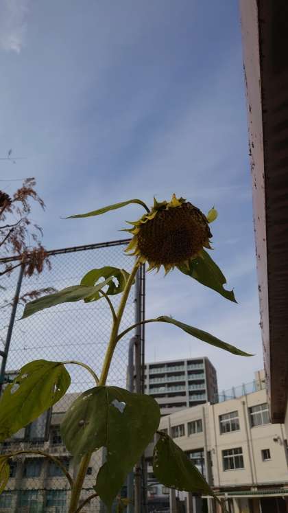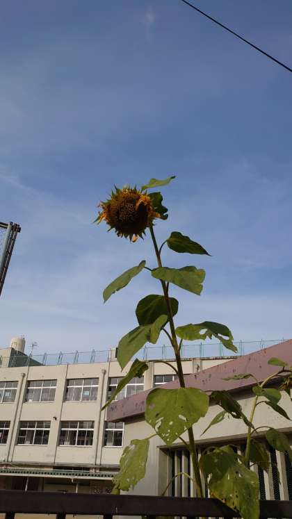 冬に咲く特別な向日葵ではなく、初夏に植えた向日葵です。