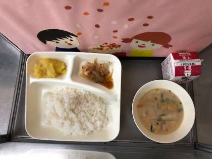 1月25日(月)の給食は、「ごはん」「牛乳」「鶏肉の甘辛焼き」「かす汁」「くりきんとん」でした。今日の給食(副食のみ)の残食調べの結果は、「くりきんとん」の残食率は0.6%、「鶏肉の甘辛焼き」「かす汁」は、お残しゼロでした♪今日もみんながよく食べてくれてうれしいです!明日もお残しゼロを目指してがんばりましょう!
